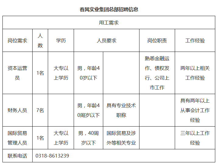 春風(fēng)實(shí)業(yè)集團(tuán)2017年招聘信息